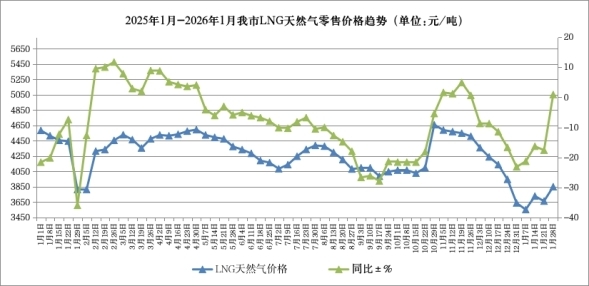 呼和浩特市價(jià)格認(rèn)證監(jiān)測(cè)中心對(duì)市場(chǎng)監(jiān)測(cè)數(shù)據(jù)顯示,本周我市LNG天然氣零售價(jià)格為3852元/噸,比上周上漲188元/噸,漲幅5.13%,同比上漲0.94%。