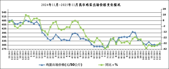 本周我市雞蛋出場價格為315.00元/50公斤(3.15元/斤),比上周上漲3.85%,同比下降31.52%。
