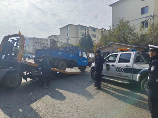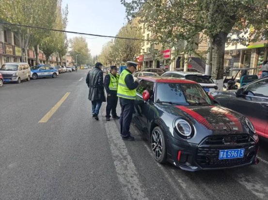 整治過程中,大隊聚焦商圈、學校、醫院周邊及主次干道交叉口等重點區域,針對亂停亂放高發路段及占用公共停車位經營等違法行為,采取“宣傳引導+勸導糾正+依法處罰”相結合的方式全面清理違停車輛。對駕駛人在場的,現場進行安全教育并引導規范停放;對駕駛人不在場且影響通行的,依法張貼罰單;對嚴重妨礙交通或拒不配合的車輛,則果斷實施拖移,以形成有力震懾。
