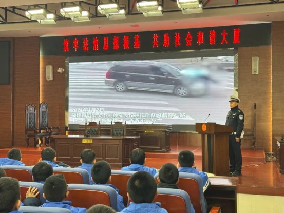 活動中,法院工作人員首先向同學們講解了憲法的基本原則和公民權利義務,用通俗語言傳遞憲法精神。交警則針對小學生認知特點,通過播放警示動畫、分析真實案例等方式,系統(tǒng)講解交通安全知識,包括人行橫道通行規(guī)則、信號燈識別、乘車系好安全帶、騎行年齡要求等,重點提示上下學途中橫穿馬路、闖紅燈、追逐打鬧等行為的危險性。