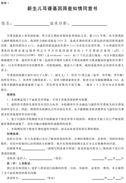 3.新生兒耳聾基因篩查知情同意書