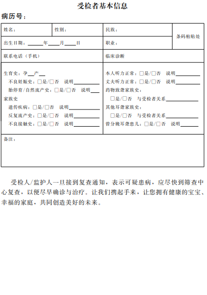 (六)咨詢服務(wù):篩查機(jī)構(gòu)安排每周不少于2次的專家門診服務(wù),為篩查出的耳聾基因攜帶者提供專家咨詢、檢測、建檔服務(wù),檢測結(jié)果采取發(fā)放告知書和專家咨詢兩種形式。