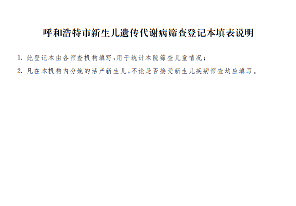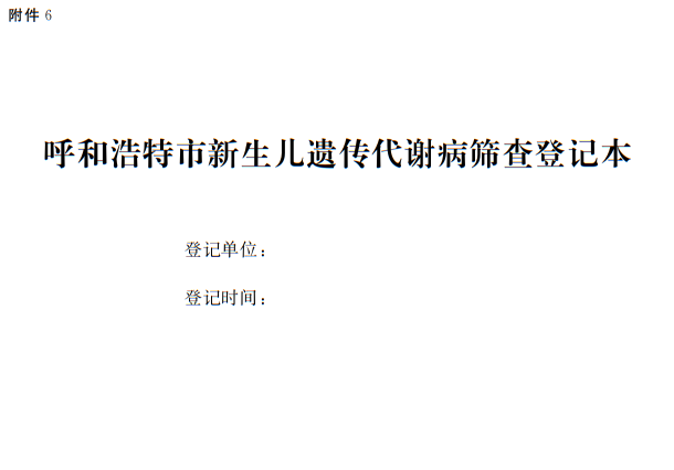 6.呼和浩特市新生兒遺傳代謝病篩查登記本
