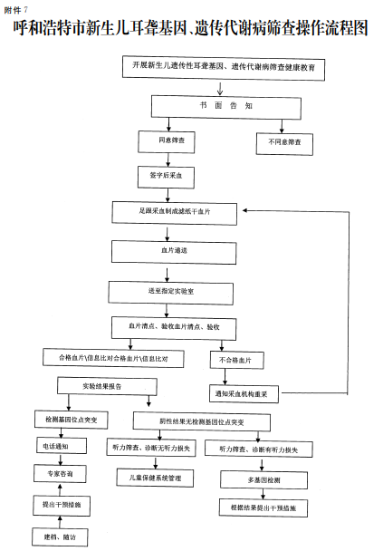 7.呼和浩特市新生兒耳聾基因、遺傳代謝病篩查操作流程圖