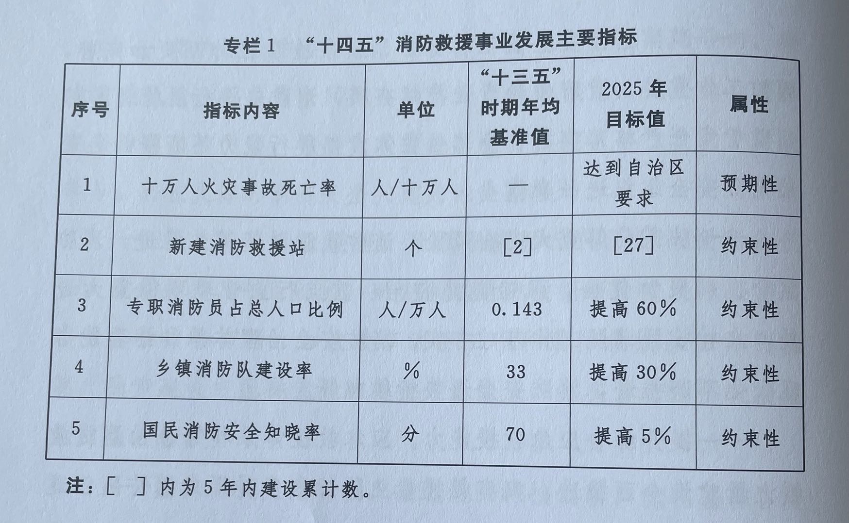專欄1 “十四五”消防救援事業發展主要指標