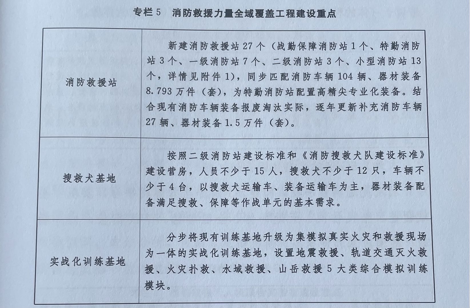 專欄5 消防救援力量全域覆蓋工程建設重點