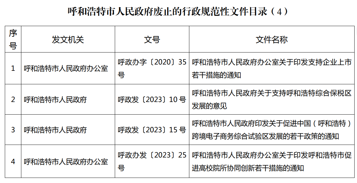 經(jīng)呼和浩特市人民政府2025年第21次常務(wù)會議研究通過,現(xiàn)將《呼和浩特市人民政府廢止的行政規(guī)范性文件目錄》印發(fā)給你們,納入目錄的行政規(guī)范性文件自本通知印發(fā)之日起停止執(zhí)行,不再作為行政管理的依據(jù)。請各地區(qū)、各部門結(jié)合當前工作實際,統(tǒng)籌做好政策銜接。