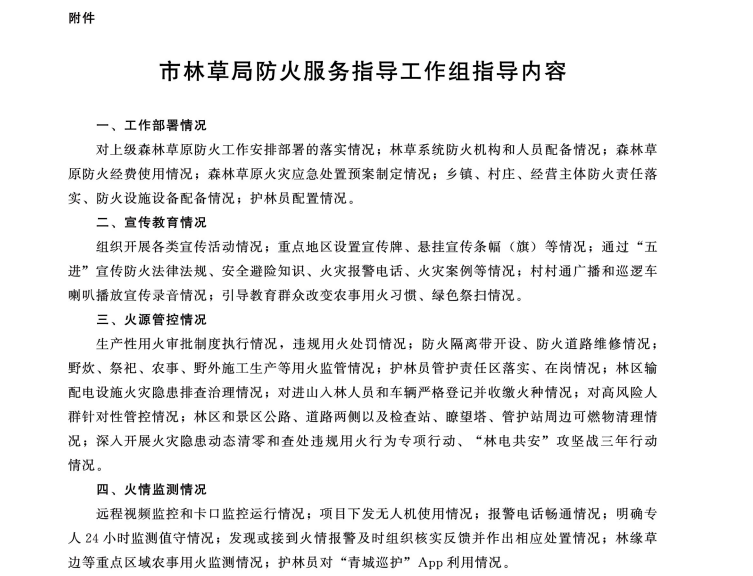 附件:市林草局防火服務(wù)指導(dǎo)工作組指導(dǎo)內(nèi)容