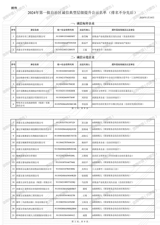 附件:2024年第一批自治區誠信典型層級提升公示名單