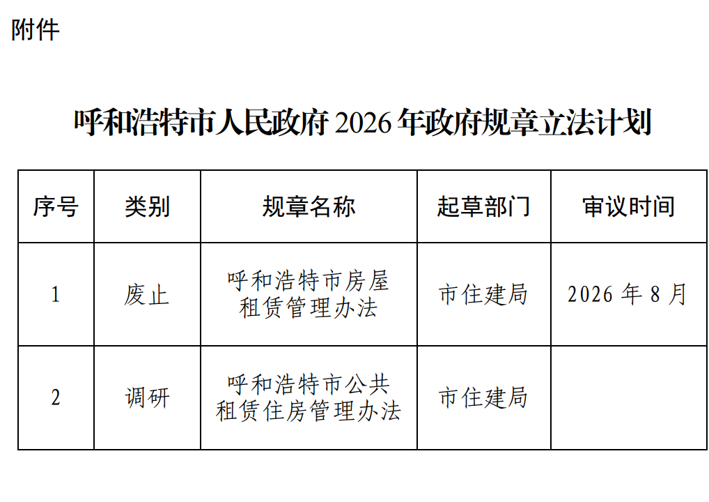 關于印發《呼和浩特市人民政府2026年